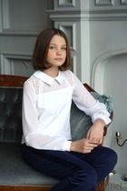 Свитшот нарядный для девочки, прямого силуэта, с рукавами реглан на манжетах. Горловина круглая оформлена притачной планкой, низ на поясе. Полочка и рукава с кокетками из прозрачной сетки, на полочке есть декоративная вставка из пайеток.
