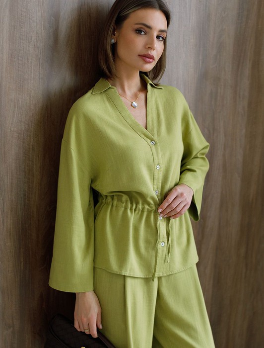 Совместные покупки Сургут Женская одежда Костюмы, комплекты — Свободная блузка с кулиской на талии изо льна с вискозой
