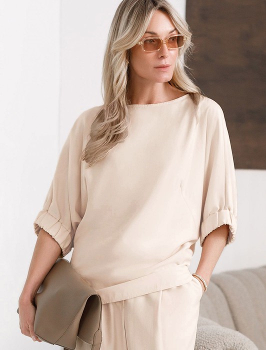 Совместные покупки Сургут Женская одежда Костюмы, комплекты — Свободная блузка с вырезом лодочка из плотного лиоцелла