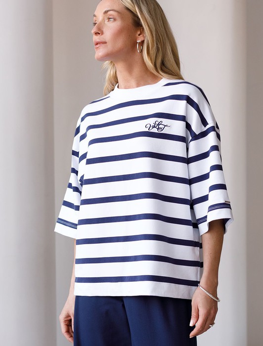Состав: 95%Хлопок 5%ПУ Плотность: 240 Г/м2 Параметры модели на первом фото: Рост 172, бюст 88, талия 64, бедра 88Футболка свободного кроя выполнена из 100% хлопкового футера-двухнитки. Мягкий хлопковый трикотаж гарантирует комфорт даже в жаркое время года. Сочетается в костюме с любыми брюками из футера или джинсами.