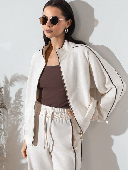 Совместные покупки Сургут Женская одежда Футболки — Свободный бомбер с лампасами на молнии из петельчатого футера двухнитки с эласта