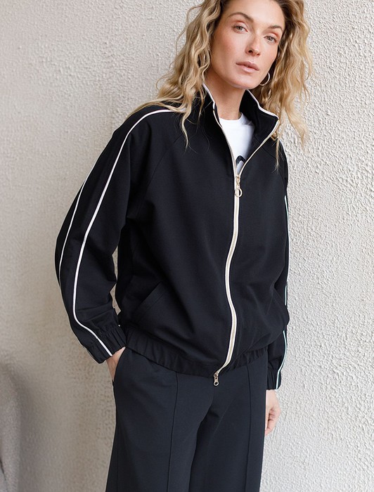 Совместные покупки Сургут Женская одежда Футболки — Свободный бомбер с лампасами на молнии из петельчатого футера двухнитки с эласта