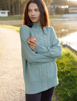 Vilatte Свитер фактурной вязки с узором косы D34.192 светло-оливковый меланж