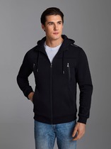Толстовка мужская из плотного и мягкого хлопкового трикотажного полотна с изнаночным начесом. Капюшоном с подкладкой из кулирного полотна. Манжеты по рукавам и пояс толстовки из рибаны. На полочке и спинке отрезные кокетки. Карманы выполнены в отрезных деталях полочки с листочками без молний. На обоих полочках выполнены прорезные вертикальные нагрудные карманы с открытыми молниями. На полочках, с внутренней стороны, подкладка из кулирного полотна.