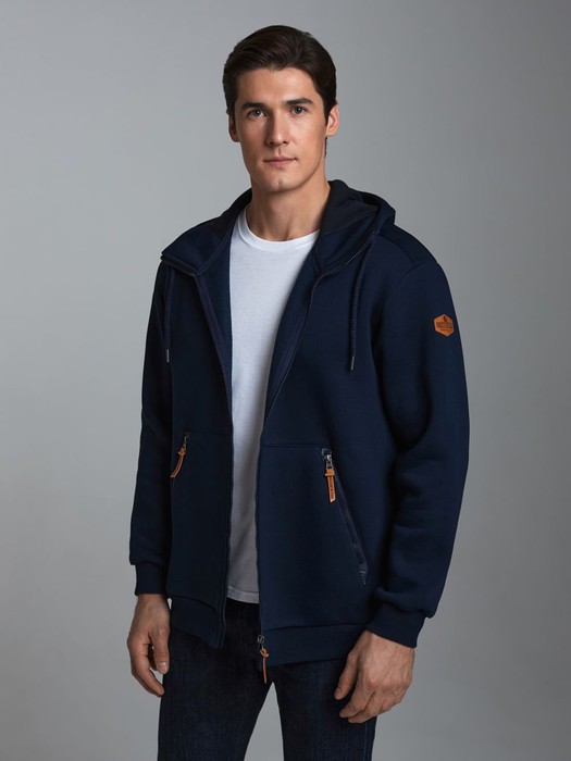 Толстовка изготовлена из плотного хлопкового трикотажного полотна с изнаночным начесом. Изделие на поясе, с капюшоном, застегивается на молнию. Удобные карманы «Кенгуру», застегиваются на молнии. Рукава втачные. Капюшон со стойкой, по лицевой части регулируется шнуром. Пояс и манжеты куртки изготовлены из плотной эластичной трикотажной резинки. На левом рукаве настрочен шеврон с фирменным логотипом.