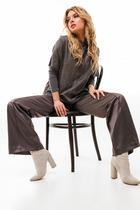 Тепленький  топ с очень красивой ткани, с очень нежной, ненавязчивой тончайшей блестящей ниточной. Благородный оттенок холодного шоколада. Согреет и украсит в прохладные дни.