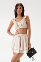 Свободный силуэт мягко обволакивает фигуру, слегка расширяясь книзу, создавая эффект лёгкой невесомости. Двойной слой ткани на передней части обеспечивает деликатную непросвечиваемость, сохраняя при этом воздушность и изящество.