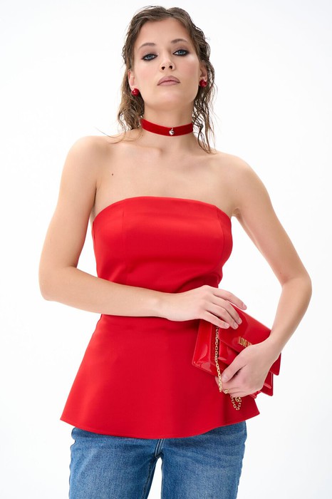 Топ-бандо без бретелей с приталенной посадкой, выполненный в минималистичном стиле. Модель подчёркивает линию плеч и талию, формируя аккуратный и современный силуэт. Подходит для повседневных и вечерних образов.