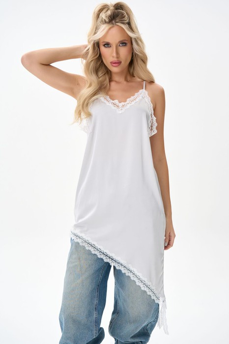 Асимметричный кружевной топ “Эли” с косой линией подола — это модный и элегантный элемент гардероба, выполненный из тонкого кружева, который добавляет образу женственности и дерзости.