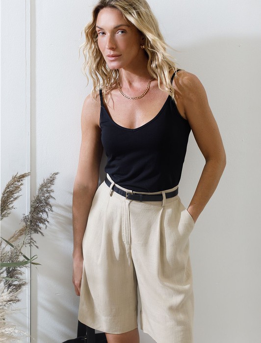 Состав: 92%Хлопок 8%ПУ Плотность: 140 Г/м2 Параметры модели на первом фото: Рост 170, бюст 89, талия 63, бедра 92 Размер товара на первом фото: 42Топ с V-вырезом выполнен из премиального хлопка. Модель дополнена регулируемыми бретелями, позволяющими носить изделие на нужном уровне. Эластичный материал гарантирует комфорт и формоустойчивость. Из украшений металлический логотип бренда.