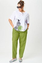 Блузка летняя из вискозасодержащего трикотажа, свободного силуэта, оверсайз. Особенностью данной модели является настоящий польский фабричный мягкий высококачественный трикотаж. Блузка украшена геометрическим узором, тонкая, горловина округлая, по бедрам резинка, рукава реглан короткие, с манжетами, на левом рукаве декоративная вставка. Стильный цвет добавит современности вашему базовому гардеробу.