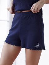 Короткие шорты на резинке с вышивкой из фактурного трикотажа в мелкий рубчик
