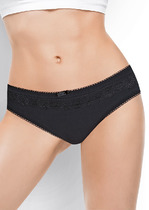 Трусики из эластичного материала с цветочным принтом и кружева. Модель бразильяна с широкими боковинами. Внутренняя ластовица выполнена из хлопка.В комплект можно подобрать Бюстгальтер.