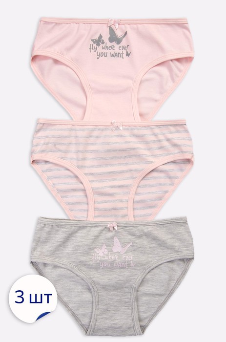 Только мягкость, легкость и комфорт! Набор детских трусов слипов из 3 штук для девочек и девочек-подростков выполнен из дышащего хлопка – идеальное решение на каждый день! Эластичная резинка, мягкая ластовица, плоские анатомические швы – эти трусики для детей будут комфортны в любой ситуации! Слипы представлены в пастельных цветах и украшены принтами бабочки и надписями.