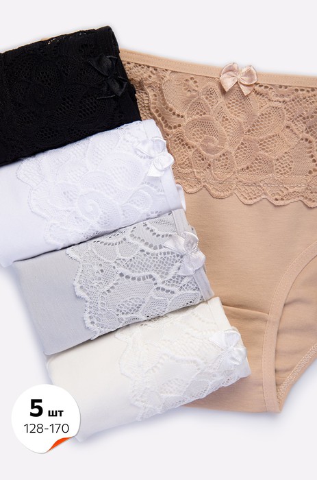 Набор детских трусов слипов 5 штук для девочек и девочек-подростков выполнен из приятного к телу хлопка. Трусики-слипы отлично тянутся и аккуратно сидят на теле. Трусы для детей представлены в базовой цветовой гамме. Слипы понравятся каждой девочке благодаря изящным кружевной вставке и милому атласному бантику.