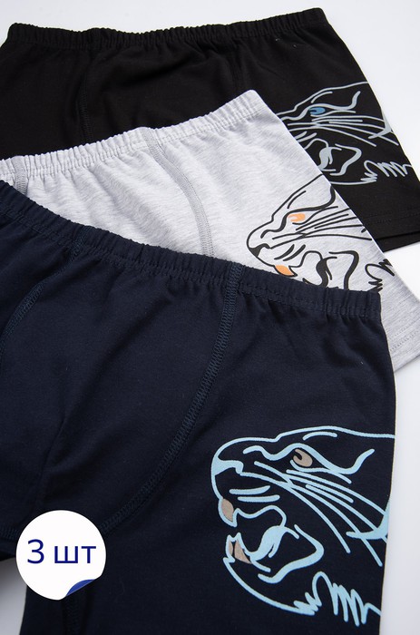 Набор детских трусов боксеров из 3 штук для мальчиков-подростков выполнен из мягкого хлопка, который отлично пропускает воздух. Эластичная резинка, плоские анатомические швы, удобный гульфик – боксеры для детей идеальны для любой ситуации! Трусы представлены в классических цветах и украшены принтом тигр.