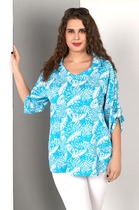 Туника молодежная из кулирки, принт-сова, кокетка-компаньон, рукав-кимоно