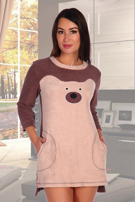 Туника домашняя с подрезом кокетки, вышивкой и боковыми карманами.
