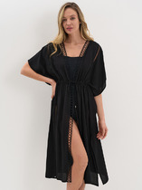 Туника женская прямого силуэта из шифона со втачными рукавами и разрезами по бокам, застежка-планка на петли и пуговицы.
