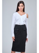 Юбка женская, силуэт карандаш, длина миди. По переду игривый разрез. По спинке фигурные накладные карманы, в среднем шве потайная застежка молния. Пояс притачной на петлю пуговицу. Дополнительно талию можно подчеркнуть при помощи съемного пояса. Отличная база для любого образа, актуальные цвета, идеальная посадка.