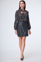 Юбка из принтованного жаккарда с отделочными деталями из экокожи.