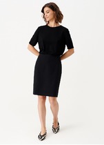 Юбка полуприлегающего силуэта выполнена из ткани плащевки на брендированной подкладе. Характеристики: полуприлегающий силуэт, пояс на резинке, по низу изделия пришито кружево. Длина по боковому шву 77 см.