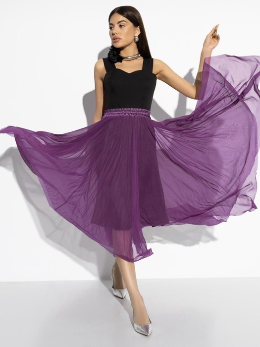 Любите восхождения к вулканам, прыжки с парашютом или погружения к акулам?! Мы тоже нет. CHARUTTI поддерживает модный экстрим – яркая юбка из сетки. Несколько слоев, неровный край и дерзкий фиолетовый цвет. Юбка из сетки на подкладе. Пояс на эластичной резинке из нарядного сатина. Подойдет на любой тип фигуры.