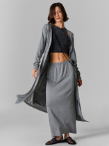 09.04 Vilatte Юбка миди с разрезом из струящегося плотного сатина D26.205 черны