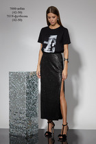 Топ прямого силуэта будет хорошо смотреться на различных типах фигуры. Он создаст эффект свободы и комфорта. Трикотажные материалы обеспечивают комфорт и подвижность. Пайетки придают ткани дополнительный блеск и текстуру.