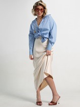 Элегантная юбка сливочного цвете из атласа, которая станет ключевым элементом вашего гардероба. Эта модель объединяет в себе стиль и практичность, подходя как для деловых мероприятий, так и для торжественных событий. По спинке расположена резинка. Юбка имеет косой крой. Сочетайте её с шелковой блузкой и туфлями на каблуке для вечернего выхода или с простой футболкой и кедами, чтобы создать стильный повседневный образ. Она станет основой для различных модных ансамблей, придавая каждому из них нотку утонченности.