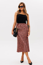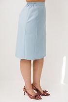 Юбка длиной миди прямая на резинке, немного расширенного силуэта. Разрез по спинке по среднему шву. Изделие без подкладки
