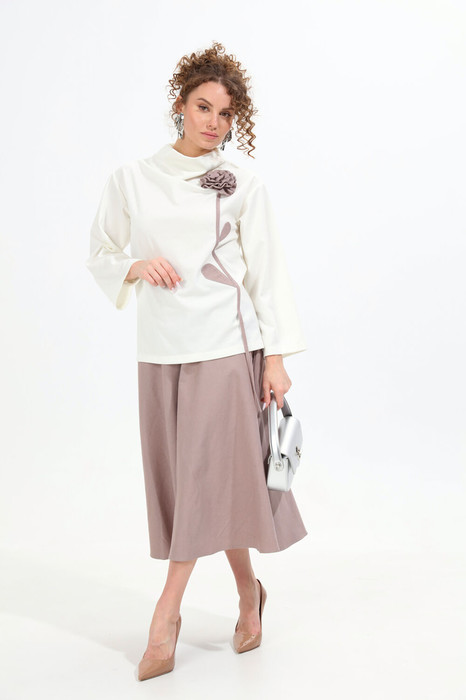 Юбка - солнце с узким поясом. В боковых швах расположены карманы. Застёжка на петлю и пуговицу и молнию по спинке.