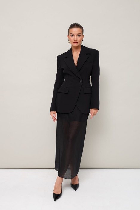 Стильная юбка из полупрозрачного вискозного полотна. Юбка на подкладке в длине миди, пояс на обтачке. Застежка в среднем шве по спинке на потайную молнию. Для удобства движения сзади обработана шлица.