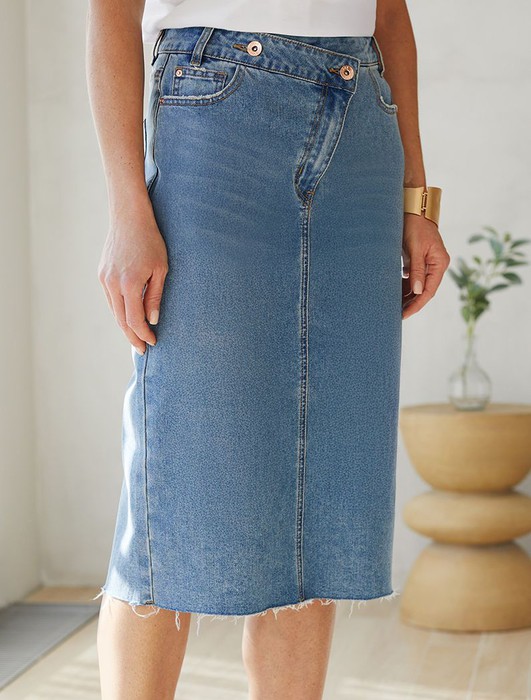Юбка с ассиметричной застежкой из эластичного денима