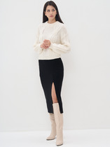 Vilatte Юбка из тончайшего футера на резинке и отделкой с открытыми срезами D46.