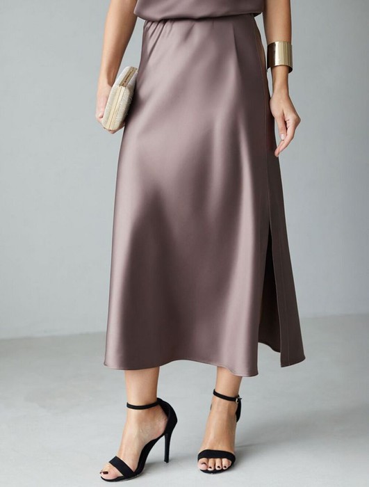 Юбка миди черного цвета с разрезом из струящегося плотного сатина — находка для модниц, ценящих элегантную классику и современный стиль. Модный крой длинной юбки подчеркивает фигуру, а мягкий эластичный пояс обеспечивает дополнительный комфорт на протяжении всего дня. Благодаря продуманному крою, юбка хорошо сидит на фигуре и подчеркивает силуэт без лишних деталей, подойдет для обладательниц пышных форм и девушек маленьких размеров. Шелковистая текстура материала приятно ощущается на коже, не просвечивает и сохраняет форму даже после длительной носки. Гладкая поверхность добавляет благородного блеска, делая образ неповторимым и шикарным в любой ситуации. Струящийся плотный сатин отличается устойчивостью к сминанию: юбка не мнется, что позволяет выглядеть безупречно на работе, встрече или прогулке. Атласная юбка придает образу элегантный и благородный вид, а разрез добавляет легкую динамичность и создает утонченный акцент на линии ног, сохраняя при этом сдержанную женственность. Юбка визуально вытягивает силу