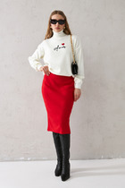 Vilatte Юбка миди с разрезом из струящегося плотного сатина D26.205 бургунди