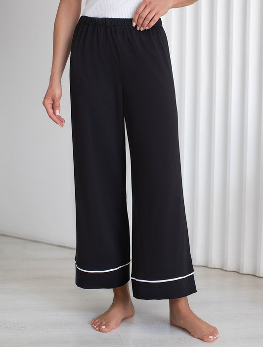 Контрастный кант по низу добавляет стильный акцент и возможность сочетать с белыми футболками нашего бренда. Эти брючки идеально подойдут тем, кто ищет стильное решение с учетом комфорта и удобства, в них вы будете женственны и утонченны даже в домашней обстановке.