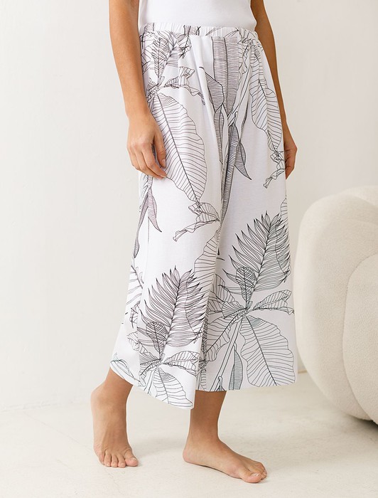 Укороченные широкие брюки кюлоты c принтом на резинке из 100% хлопка
