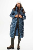 Утепленное стеганное пальто полуприлегающего силуэта с капюшоном, длина до середины бедра