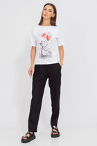 Стильные женские брючки на поясе с завышенной линией талии. Модель прямого кроя, на поясе — молния с клепкой, по бокам вшита резинка, имеются два боковых кармана.