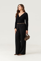 Утепленные женские брюки с высокой посадкой, для регулировки по линии талии имеется пояс, продетый через пластиковые рамки, который фиксируется на липучки. Застежка - молния, два глубоких прорезных кармана на молнии. Благодаря высокой спинке и возможности регулировки на поясе, талия визуально уменьшается, а Ваша поясница всегда в тепле
