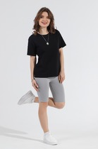 Велосипедки предназначены для повседневной носик и для активного отдыха. По бокам штанин внизу расположены небольшие разрезы. Капри выполнены на эластичной резинке. В состав материала включена лайкра поэтому велосипедки легко растягиваются и не теряют свою форму.