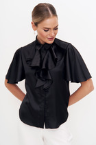 Легкая свободная блуза с короткими рукавами из длинноволокнистого гребенного хлопка. По полочке декоративная складка с эффектом запаха.