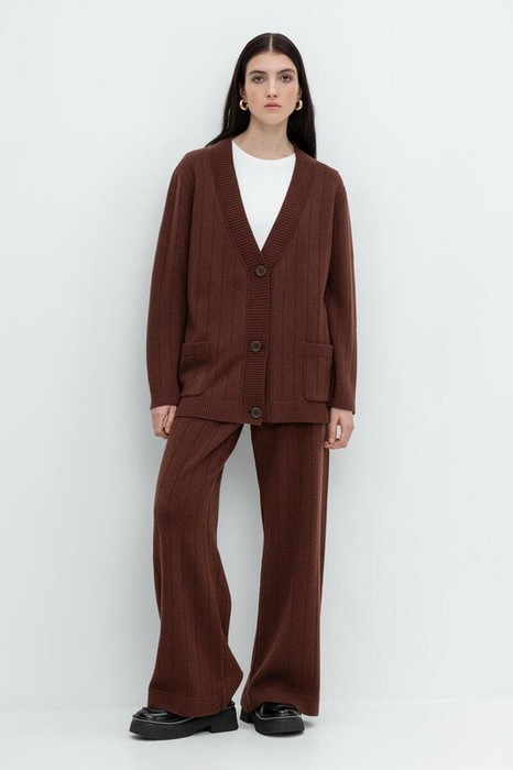 Удобные вязаные брюки прямого силуэта. Выполнены из мягкой полушерстяной пряжи. Шерсть мериноса в составе сохраняет тепло, а благодаря волокнам акрила изделие мягкое и дольше сохраняет форму.