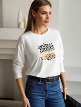 Vilatte Лонгслив с принтом из премиального хлопка с эластаном D49.148 молочный_л
