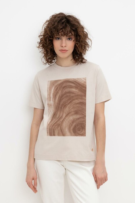 Женская футболка из длинноволокнистого гребенного хлопка с принтом.