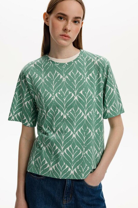 Футболка прямого силуэта из высококачественного гребенного хлопка. Дизайн орнамента на футболке создает летнее настроение.