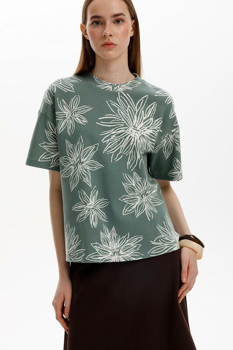 Совместные покупки Сургут Женская одежда Футболки — Very Neat фуфайка жен ЕВТ 3317/зеленый,крупные астры