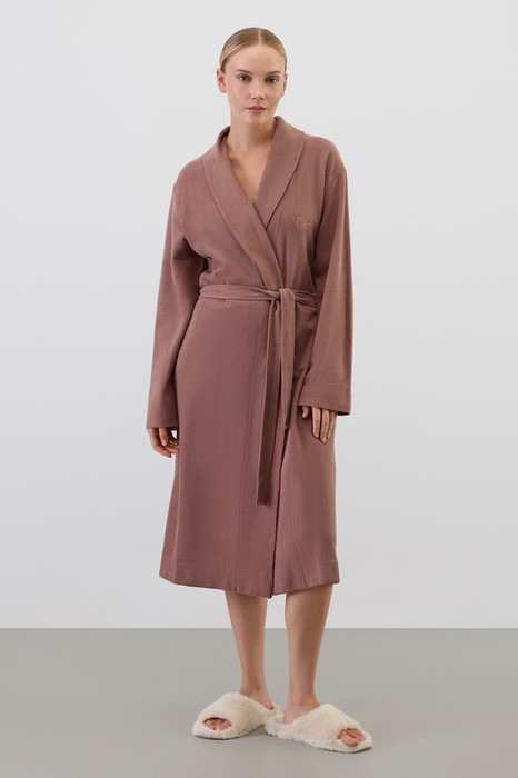 Халат из мягкого 100% хлопка с обработкой пич эффектом  подарит атмосферу домашнего уюта и комфорта, придавая изделию бархатистость и мягкость.